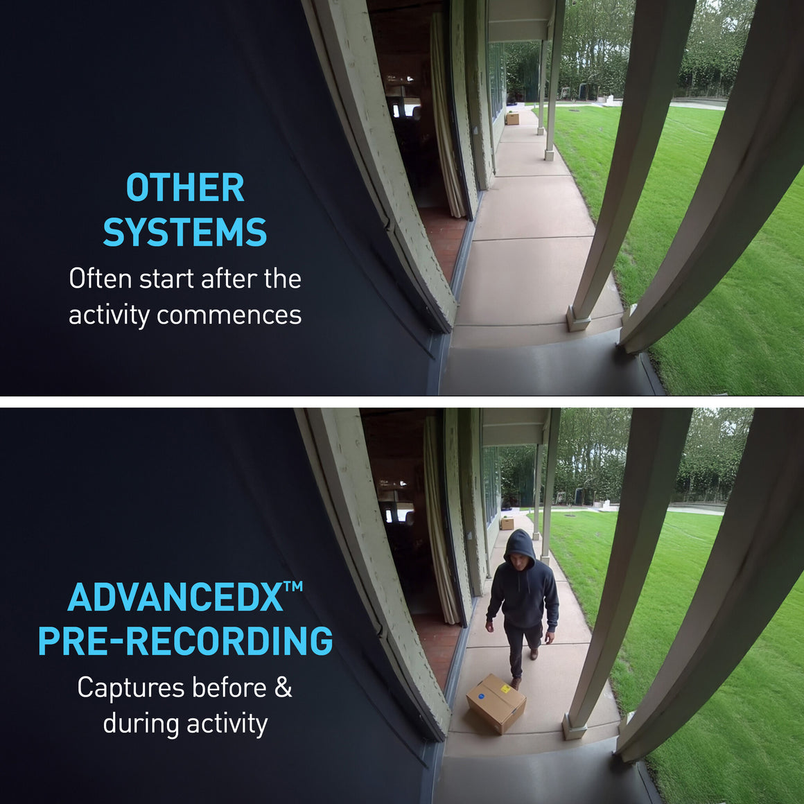 - Never Miss a Thing. Pre-recording ensures you capture the seconds before & after the activity starts & clips continue until the action stops, no matter how long that takes