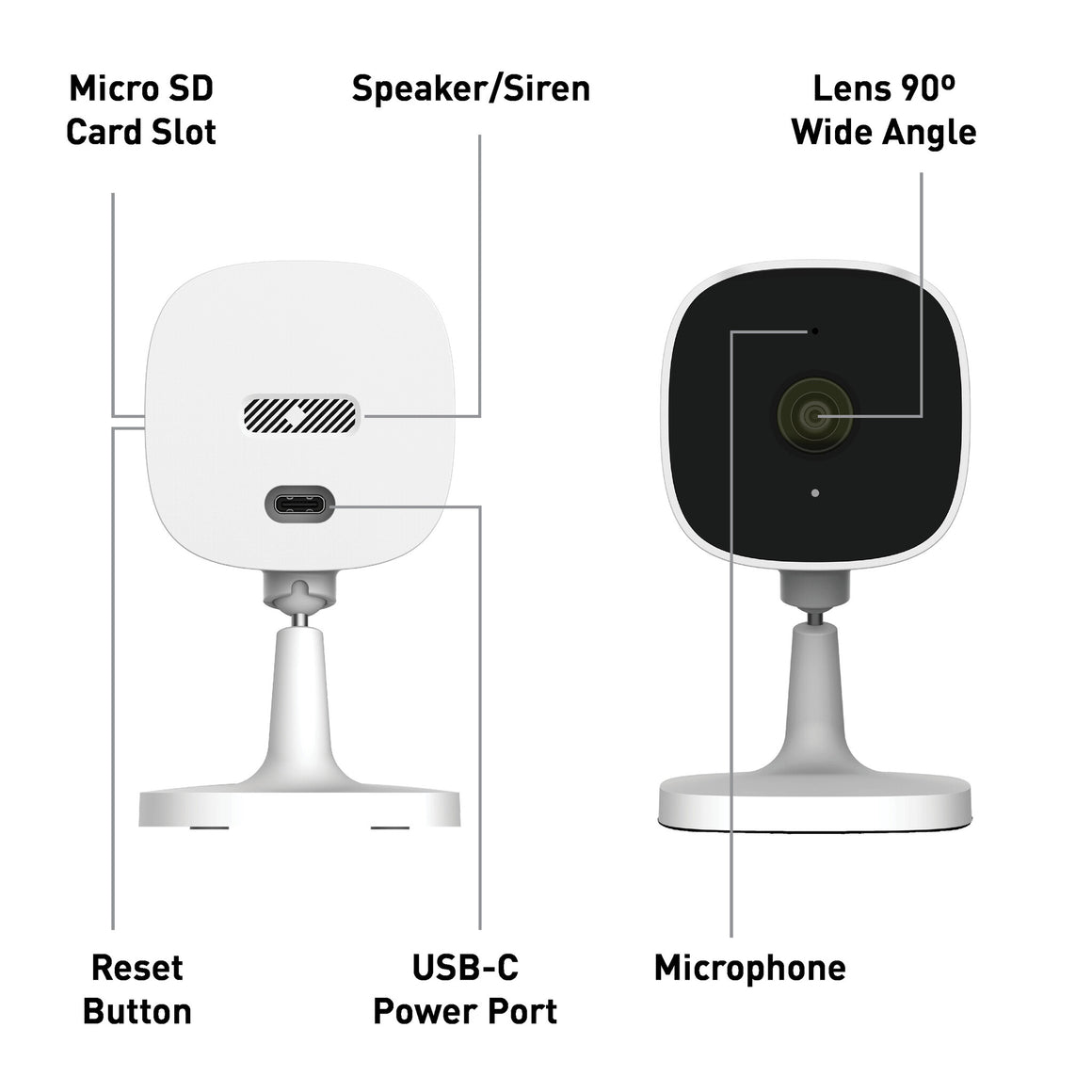 Stay connected and informed with its two-way audio feature, enabling you to communicate with family members, pets, or deter intruders remotely. The wide 90° viewing angle minimizes blind spots, delivering comprehensive coverage of your space.