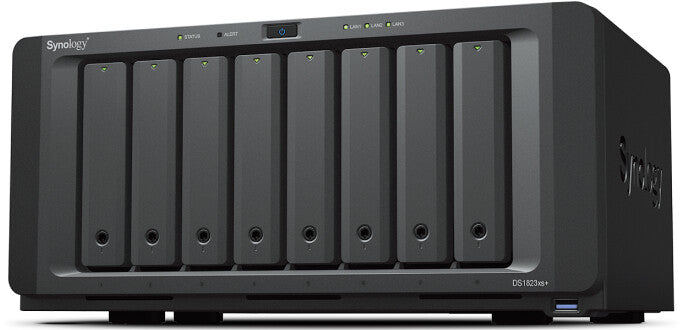 The DS1823xs+ is a powerful central storage server that can easily be deployed anywhere to provide shared data storage and sharing, endpoint and server backup, VM storage, surveillance management, and other business applications. It is perfect in settings where no dedicated server rack or data center is available.