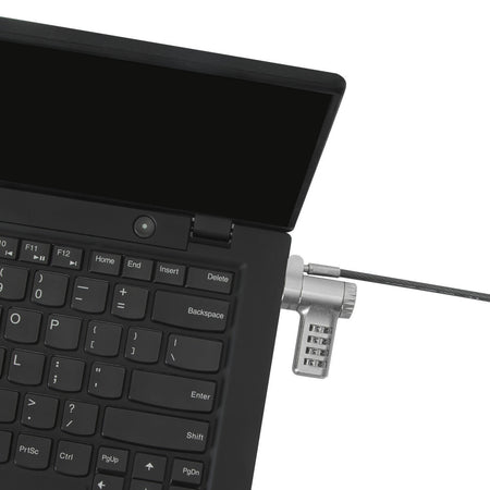 With a unique design for a secured, universal fit, we’ve eliminated the need for interchangeable heads, which means there aren’t heads to lose or replace. This lock fits virtually any lock slot, including Kensington® Nano, Kensington K-Slot, and the oversized Noble wedge-shaped lock slots.