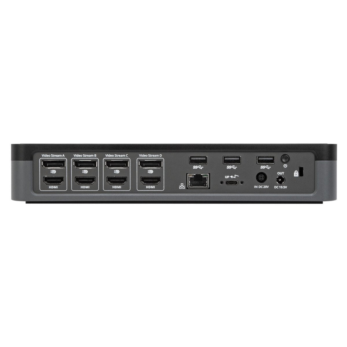 Your workstation has never been more powerful with a high-performance quad-monitor dock that supports full 4K (3840 x 2160 p60) resolution or DisplayPort (3840 x 2160 p60) on all four displays as well as viewing modes for two and three monitors. The eight available video out ports allow you to decide between HDMI or DP++ display options to ensure compatibility for your configuration.