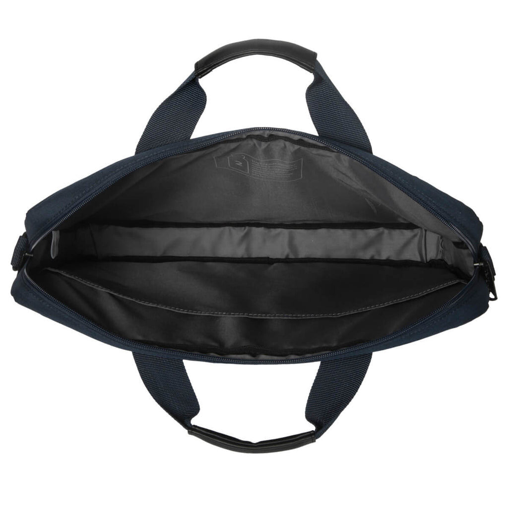 Stay organised and stay ahead with the 15-16" GeoLite EcoSmart® Slim Brief. Sporting a modern design, it’s ideal for professionals looking to balance style, storage, and laptop protection. Slimmer than a briefcase and more functional than a sleeve, the GeoLite EcoSmart® Slim Brief offers a divided laptop compartment allowing for a separate space for documents and files. The front zip compartment provides easy access to your phone, charger, and other accessories. Its removable shoulder strap, soft-grip handles, and luggage trolley strap offer comfortable carrying options. And, its water-resistant exterior and earth-conscious interior, deliver on style, functionality, and sustainability.