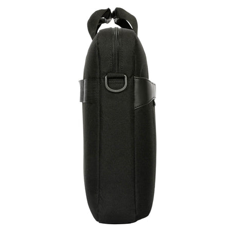 Stay organised and stay ahead with the 15-16" GeoLite EcoSmart® Slim Brief. Sporting a modern design, it’s ideal for professionals looking to balance style, storage, and laptop protection. Slimmer than a briefcase and more functional than a sleeve, the GeoLite EcoSmart® Slim Brief offers a divided laptop compartment allowing for a separate space for documents and files. The front zip compartment provides easy access to your phone, charger, and other accessories. Its removable shoulder strap, soft-grip handles, and luggage trolley strap offer comfortable carrying options. And, its water-resistant exterior and earth-conscious interior, deliver on style, functionality, and sustainability.
