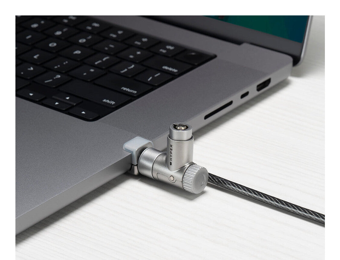 Compatible with all Apple Silicon MacBook Pro models, the HyperShield Cable Lock offers a precise fit without disrupting or damaging from your device’s premium aesthetic.