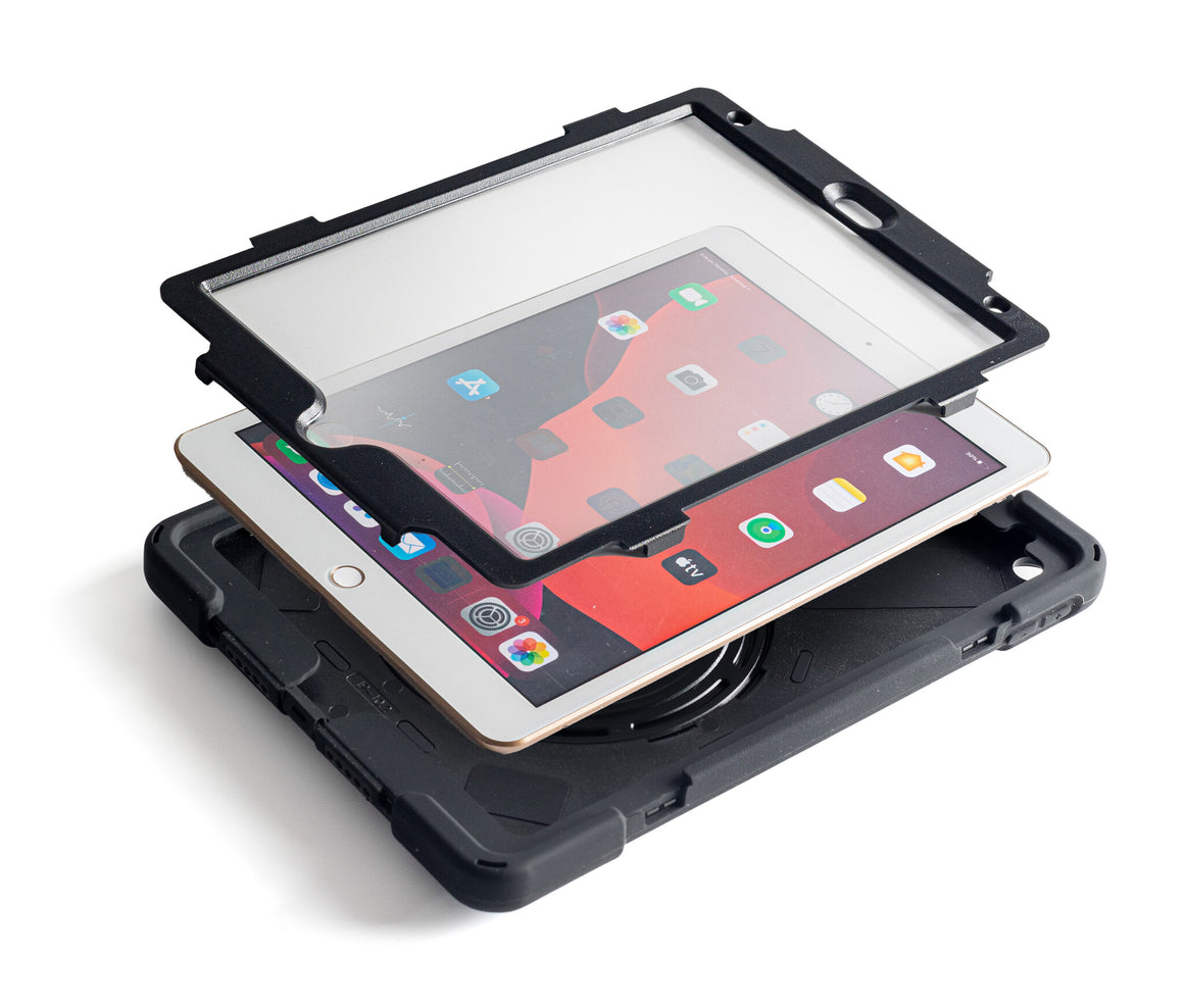 This all round protective cover (for iPad 9th Gen 10.2") is perfect for those that play rough and want reliable protection. The combination of rigid plastic and shock absorbing silicone ensures your machine is always protected while the built in screen cover keeps your touchscreen protected and scratch free. With an incorporated stand and full access to buttons and power this cover is hard to beat.
