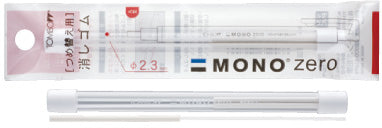 The MONO zero is easily refillable. Keep the push button pushed and pull the rest of the eraser out of the lead. Now insert the refill into the metal lead and push it back in to the wished length.