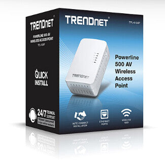TRENDnet’s Powerline 500 AV Wireless Access Point, model TPL-410AP, uses an electrical outlet to create or expand a wireless network. Two Powerline adapters are needed to start a network. Connect one adapter to a router and plug in the TPL-410AP on your electrical system to create or expand a high performance wireless network.