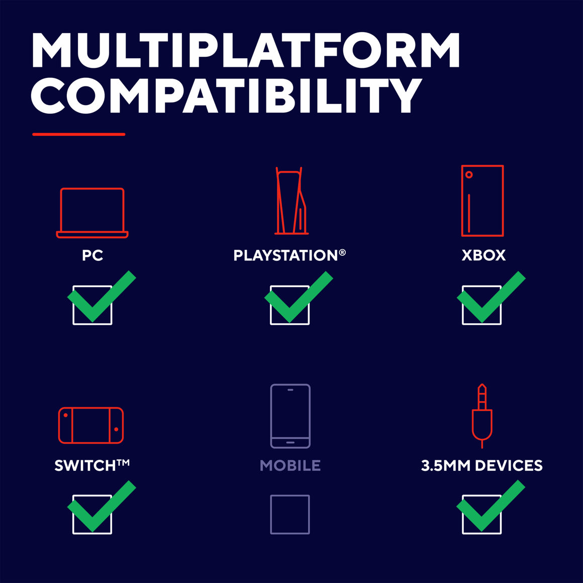 Great sound, for all your platforms. Whether you’re a fan of PC, PlayStation, Xbox, Switch or anything else, the Carus Multiplatform Gaming Headset easily connects to any 3.5mm devices via the 1.2m fixed cable or included 1m extension cable.