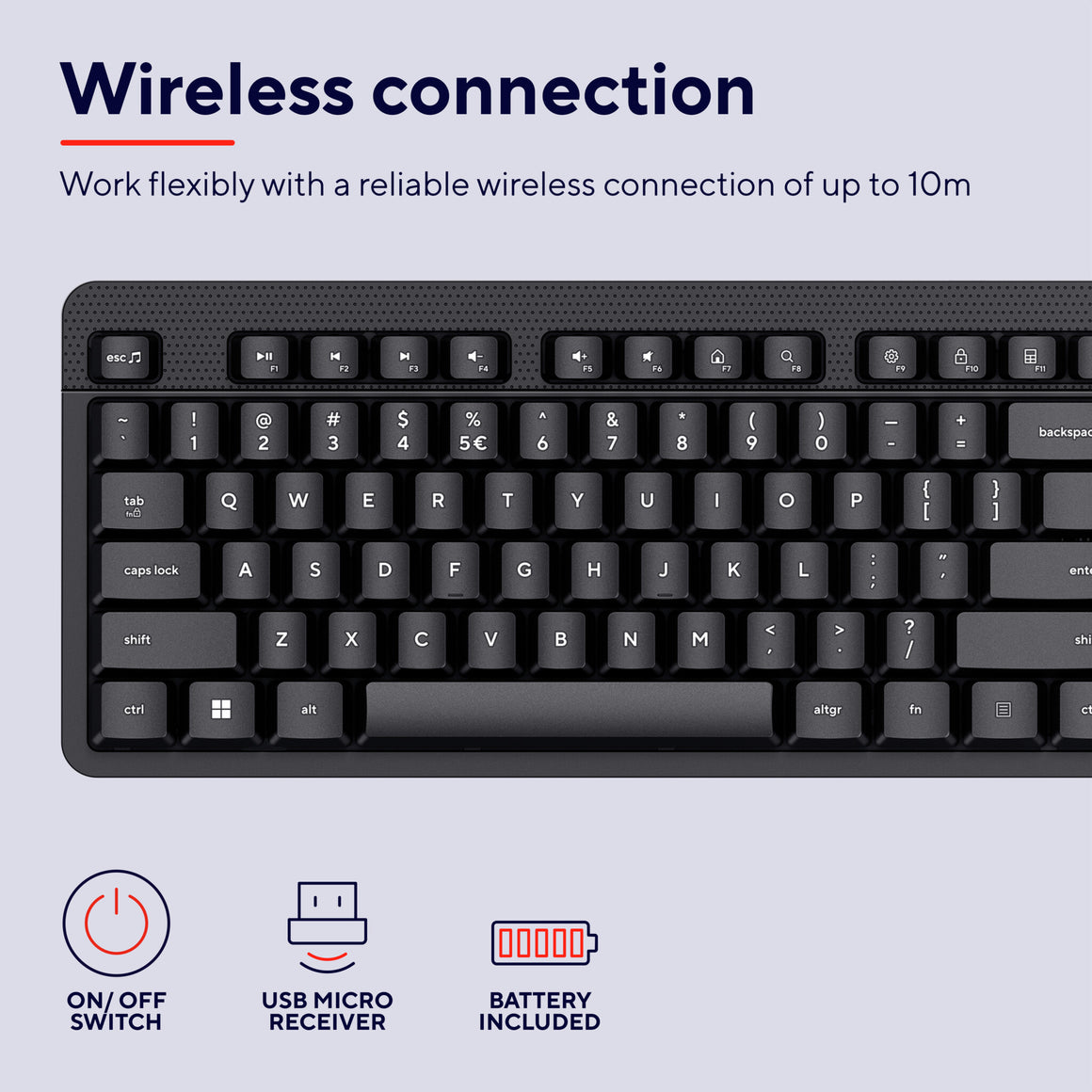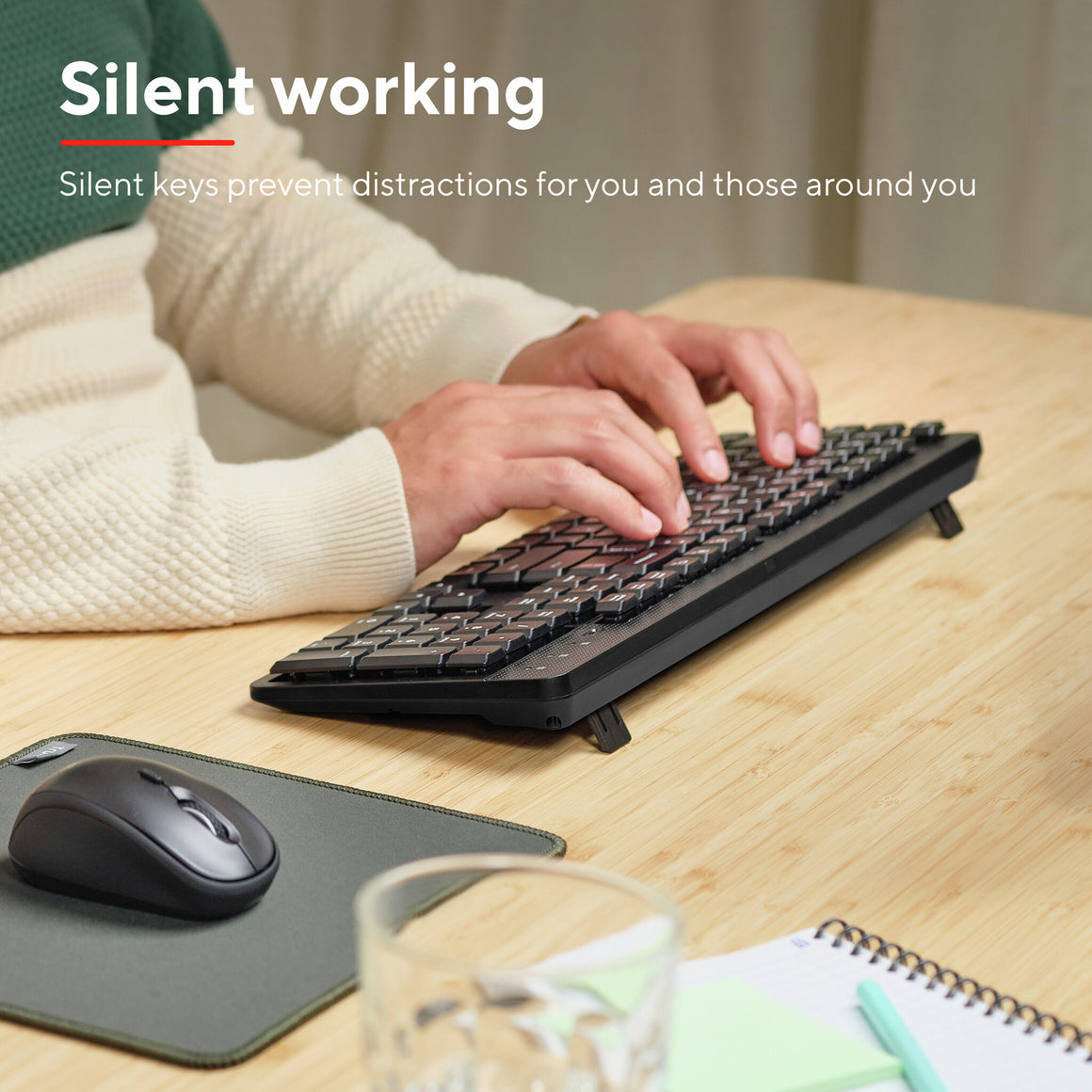 Noisy typing is out, silent typing is in. This wireless keyboard has silent keys for a soft keystroke so you can easily type without disturbing yourself and those around you. Ready to enjoy your most productive workdays yet?