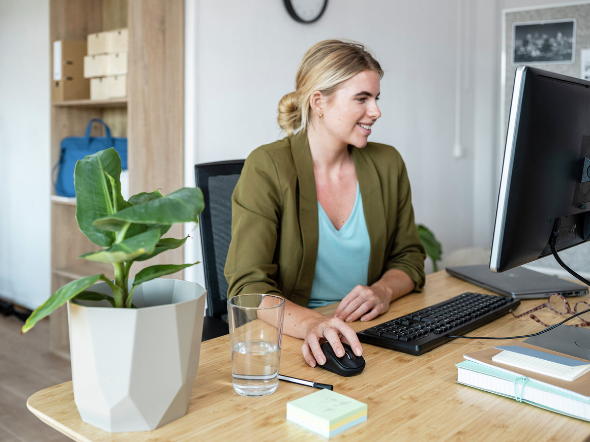Compact wireless mouse with silent buttons; made with 83% recycled materials