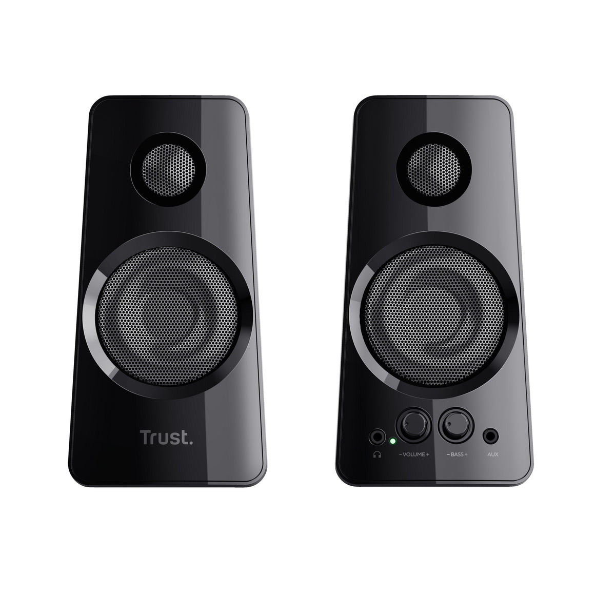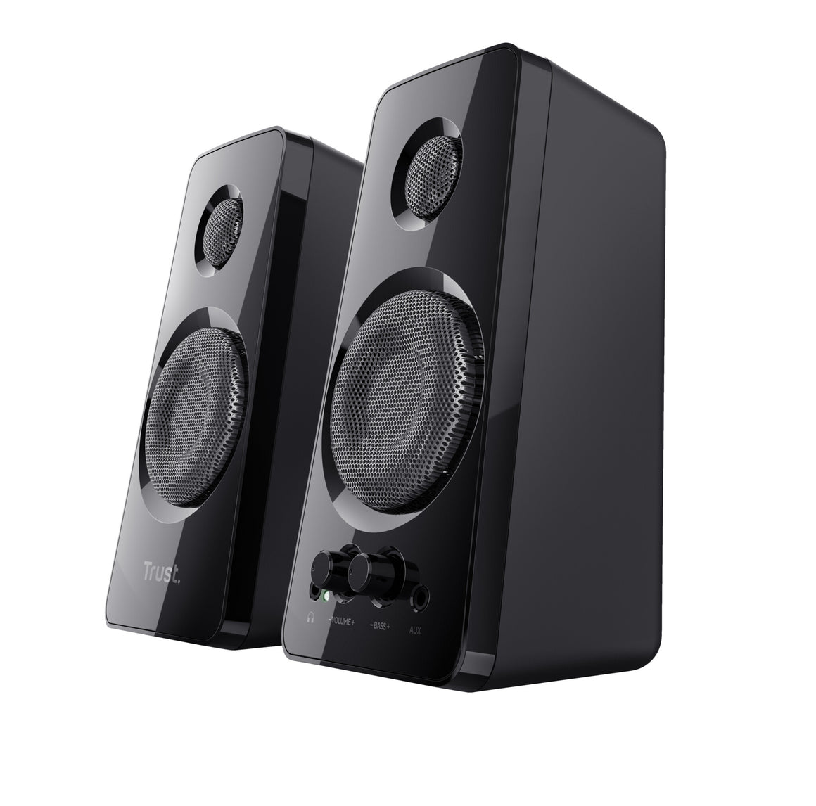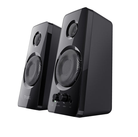 Stylish speaker set producing a rich sound with a powerful 36W peak power output (18 Watt RMS)