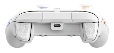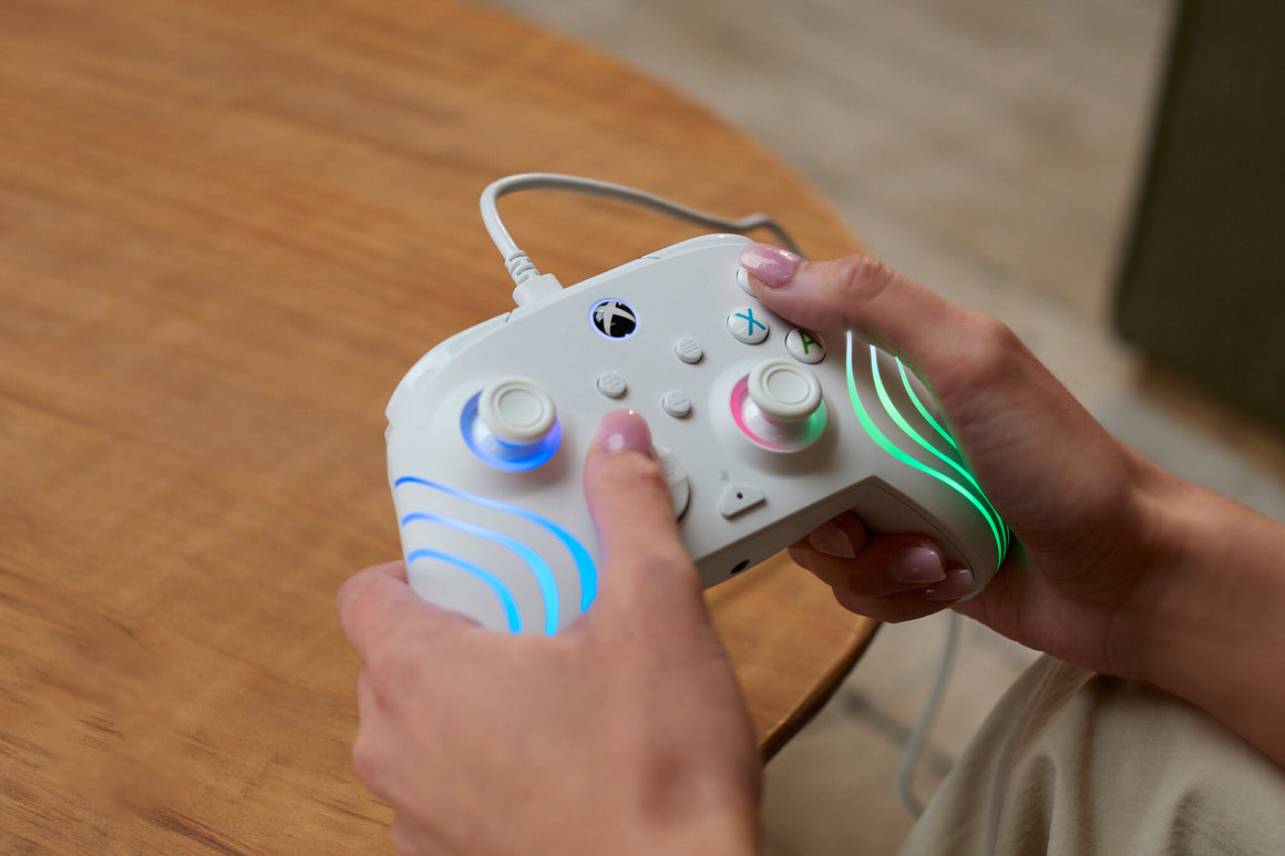 Unlock elevated gaming performance and style with the Turtle Beach® Afterglow™ Wave RGB gaming controller for Xbox Series X|S, Xbox One and Windows 10 & 11 PCs. Featuring Hall-Effect 3-stop adjustable triggers, you can fine-tune trigger sensitivity and enjoy smooth, precise, and durable control. Customize your controller’s style with intelligent RGB lighting, offering eight unique lighting zones and eight different preset modes with adjustable brightness. Customize your gameplay with two mappable quick-action buttons, keeping essential commands within close reach. Stay locked in with patented D-pad audio controls at your fingertips, allowing for instant adjustments to game/chat volume mix and master volume, plus a dedicated mic mute button. Download the Control Hub companion app for Xbox consoles & Windows PCs giving you advanced customization options for lighting, button mapping, as well as controller configuration and diagnosis. Dual rumble motors and impulse triggers provide immersive, responsive feedback, and an ergonomic shape with laser-etched textured grips ensures a fatigue-free feel. Officially licensed for Xbox and PC, the controller’s 10ft USB-C wired connection ensures reliable, lag-free gaming.