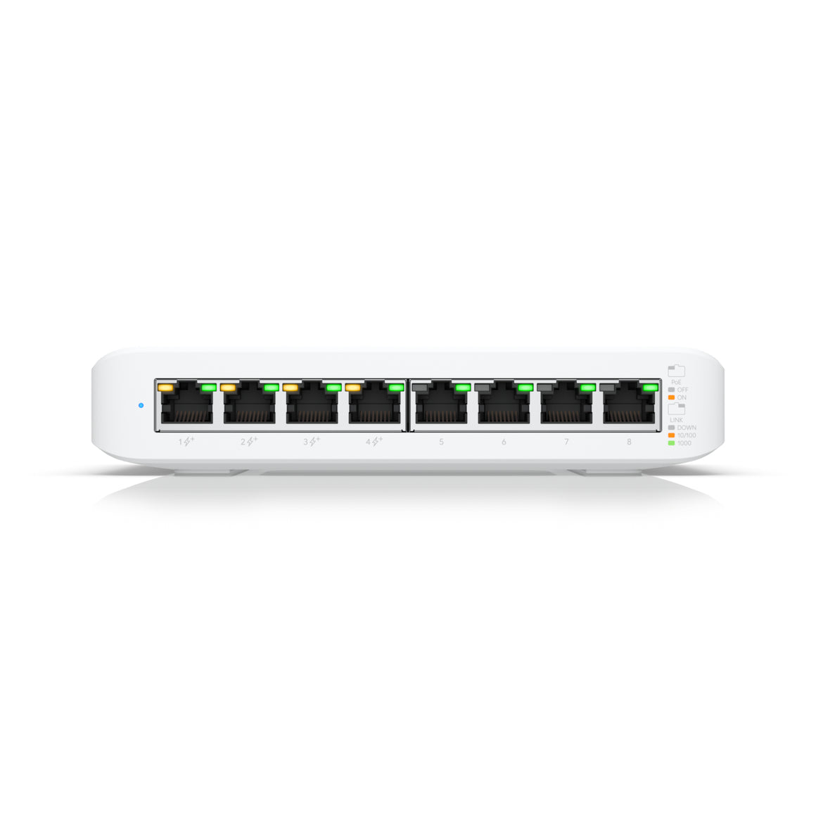 An 8-port, Layer 2 PoE switch supporting silent fanless cooling.