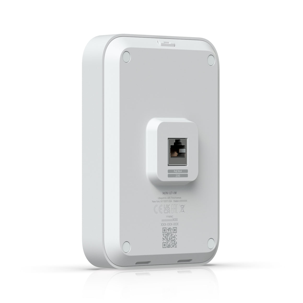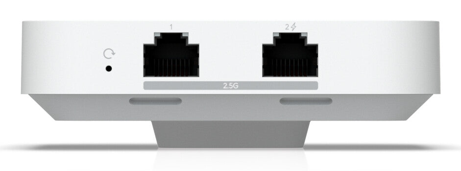 Wall-mounted WiFi 7 AP with 4 spatial streams and an integrated 2.5 GbE PoE switch designed for hospitality environments.