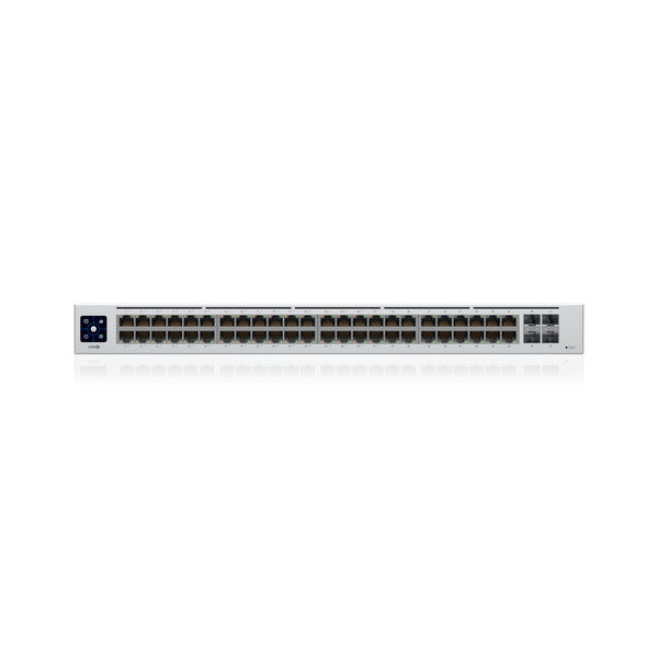 A 48-port, Layer 2 PoE switch with a silent, fanless cooling system.
