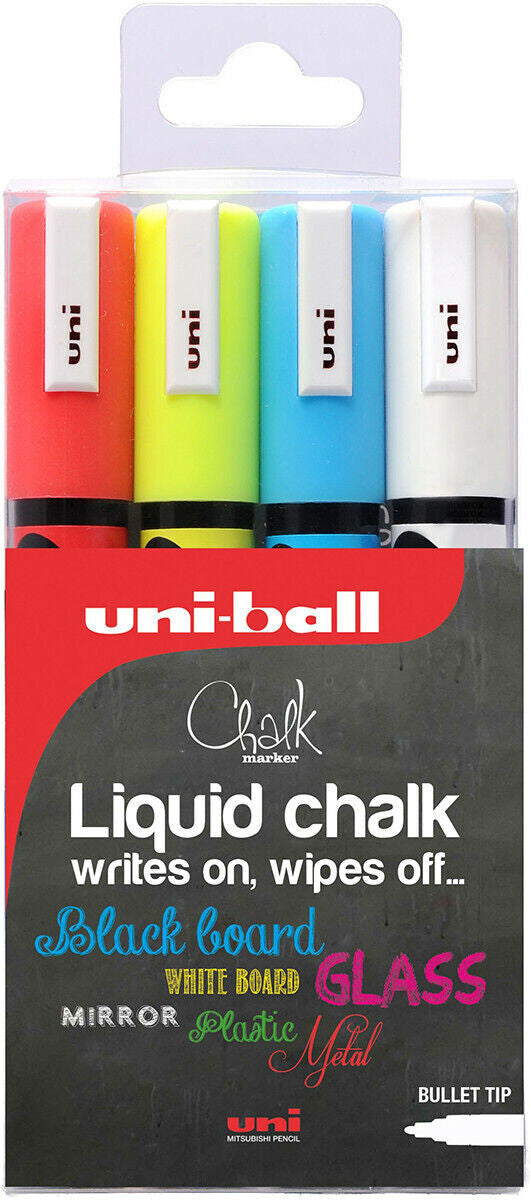 The uni-ball Chalk Marker writes on and wipes off making it the perfect tool for writing on non-porous surfaces such as chalkboards and glass. Perfect for pub, and restaurant signs, its broad bullet tip makes this pen a great all-rounder, good for hand lettering and bold, robust drawings. Not suitable for porous surfaces.