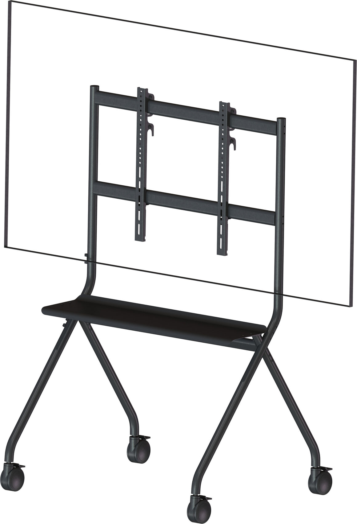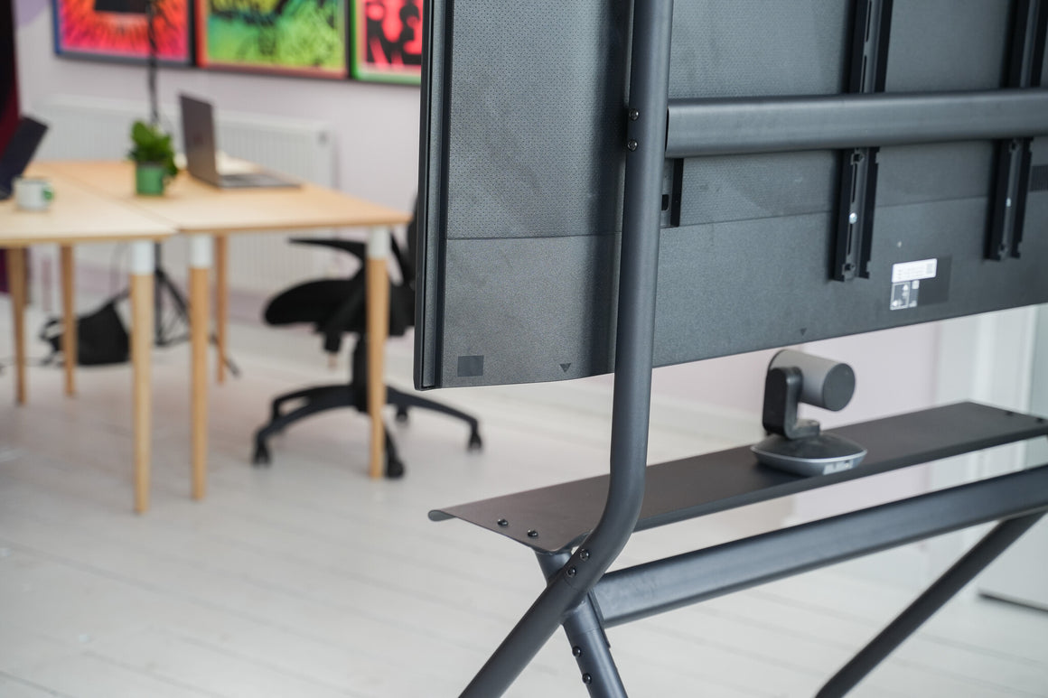 Created for Microsoft Teams Rooms and Zoom rooms, this floor stand for displays is incredibly simple to put together and use. It comes with a spacious shelf designed to accommodate all types of video conferencing equipment. Its straightforward design contributes to its impressive strength and durability.