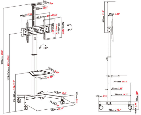 This cart is ideal for users who require the ability to rotate their display 90 degrees.