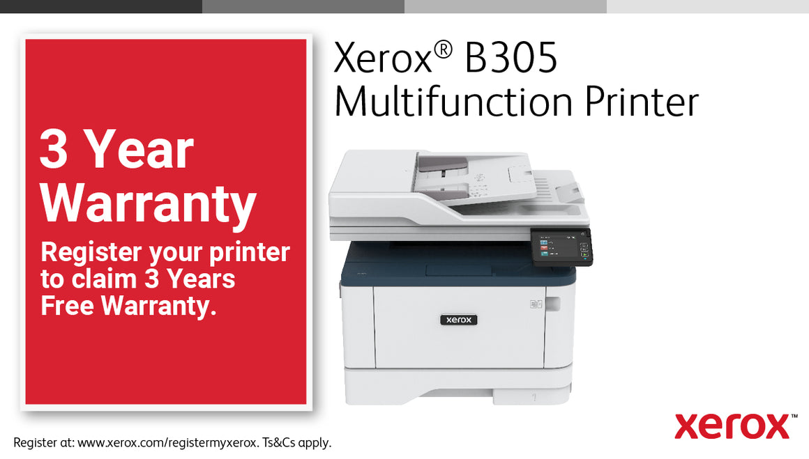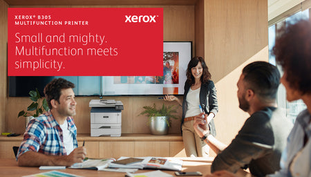 The Xerox B305 multifunction printer includes built-in Wi-Fi with Wi-Fi Direct and is easy to set up with Xerox® Smart Start Software, so it is ready to work hard right out of the box. Print from your mobile devices with support for Apple AirPrint, Mopria Print Service and Chromebook printing. Designed for small businesses that need to print, copy, and scan. It includes features such as automatic 2-sided printing on letter and legal sized paper, a 50-sheet automatic document feeder, standard paper capacity of 250 sheets, a 1 GHz Dual Core processor with 512 MB of memory, and monthly print volume up to 2,500 pages, the B305 is a workhorse. Do more with optional Xerox Workflow Central, allowing you to convert documents into other languages, change handwritten messages into shareable text documents, create audio files of hardcopy to listen to on the go, automatically redact content, and convert scans into Microsoft Office Applications. Our Green World Alliance program offers hassle-free toner cartridge recycling.