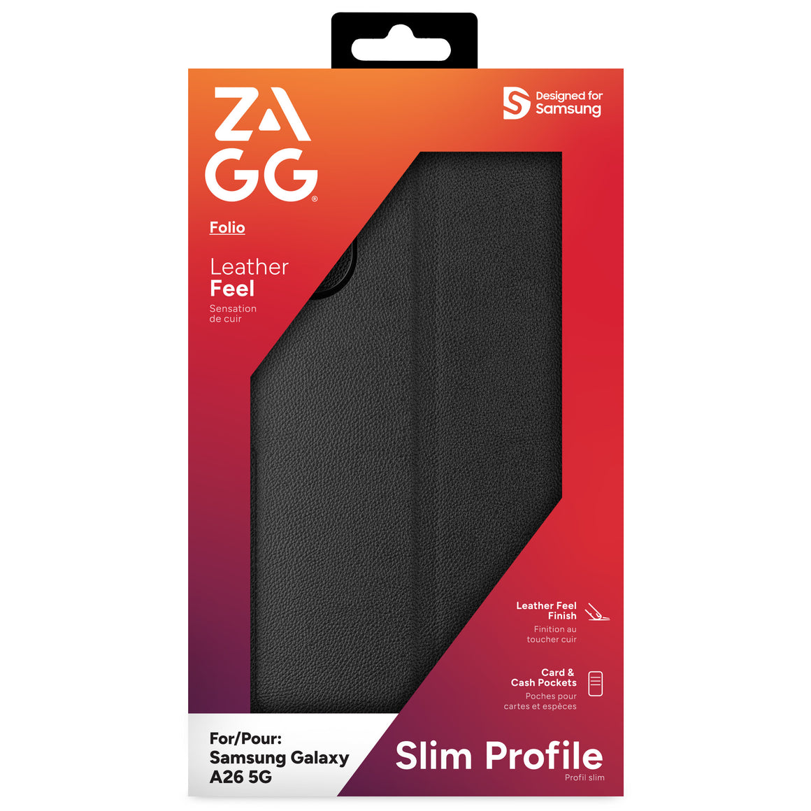 The ZAGG Folio Case for Samsung A26 combines elegance and functionality with its leather-feel finish and built-in card and cash pockets. Designed for convenience, it features a stand function for hands-free use and resists fingerprints to keep it looking pristine. The pocket-friendly design and magnetic clasp provide a secure, stylish way to protect your device while on the go.